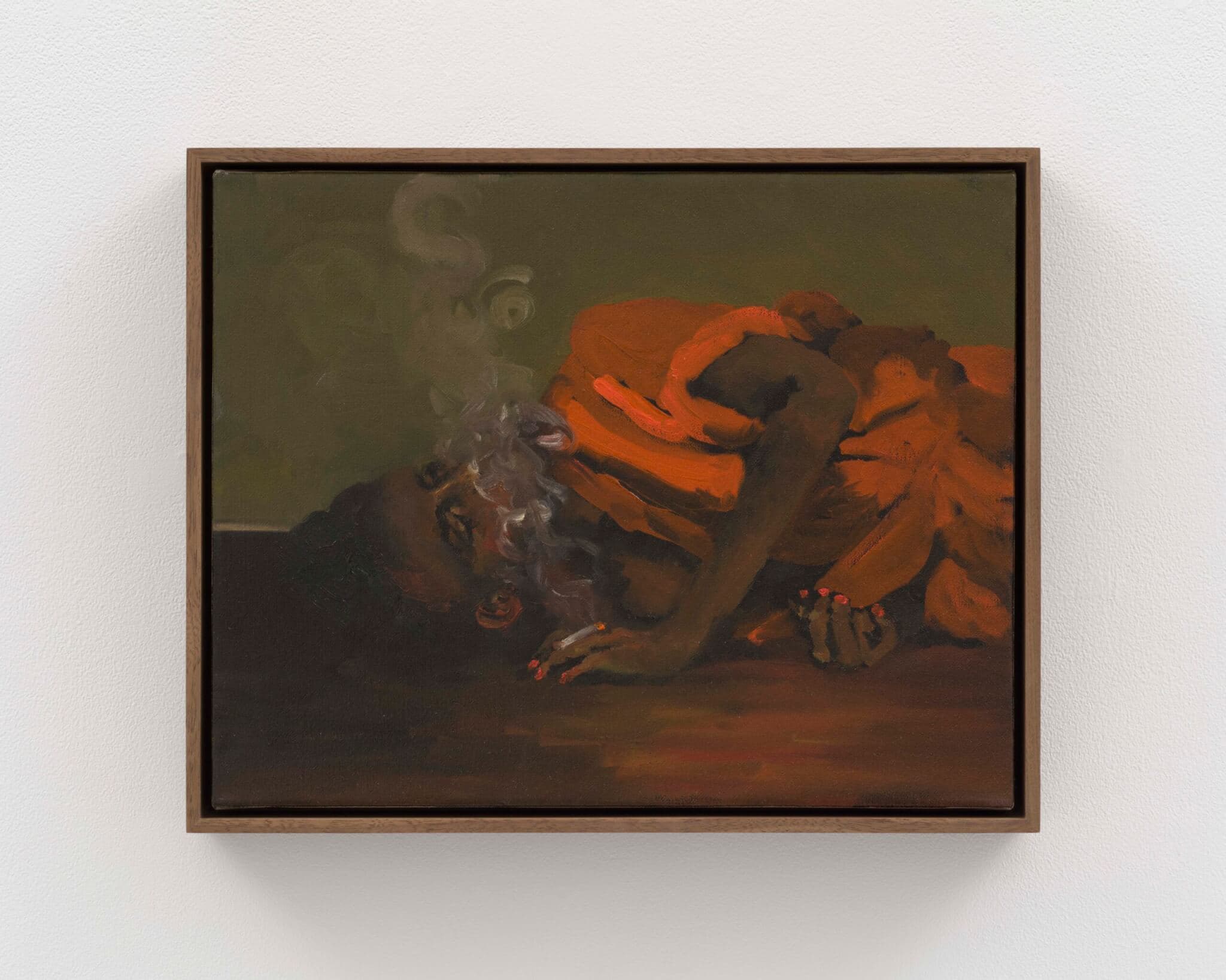 Danielle Mckinney, Tell me More, 2023. Oil on linen, 11 x 14 inches (27.9 x 35.6 cm). Courtesy of the artist, Marianne Boesky Gallery, New York and Aspen, and Galerie Max Hetzler, Berlin | Paris | London | Marfa. © Danielle Mckinney. Photo by Pierre Le Hors.