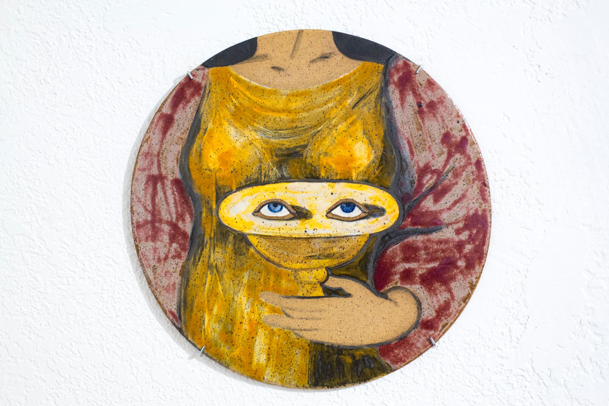 Giovanna Pizzoferrato Ribeiro, Portrait of Saint Lucy Holding Her Own Eyeballs, 2021. Glazed ceramic, 12.25′ diameter. Photo by: Amy Shelton.