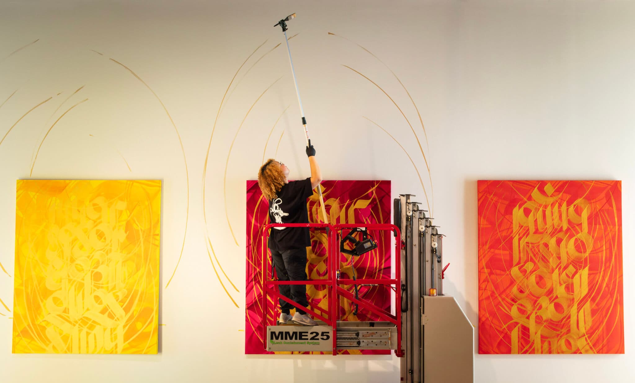 The colorful paint strokes in Nepali artist Sneha “Imagine” Shrestha’s new exhibit “Ritual and Devotion” reach deep into the past while elevating her familial present. Shrestha is known for her calligraphic graffiti work emblazoning the Nepali alphabet on buildings in various cities, from Boston to Istanbul. In “Ritual and Devotion,” her first major solo exhibition at the Cantor Art Gallery, Shrestha stays true to her ancient leanings centered on ritual, heritage, memory, and identity. Through gorgeous, bold paintings saturated with azure, green, orange, red, and yellow, the artist ponders acts such as filling out immigration forms, treasuring family photographs, and creating new work as ritualistic and devotional. —Jacquinn Sinclair