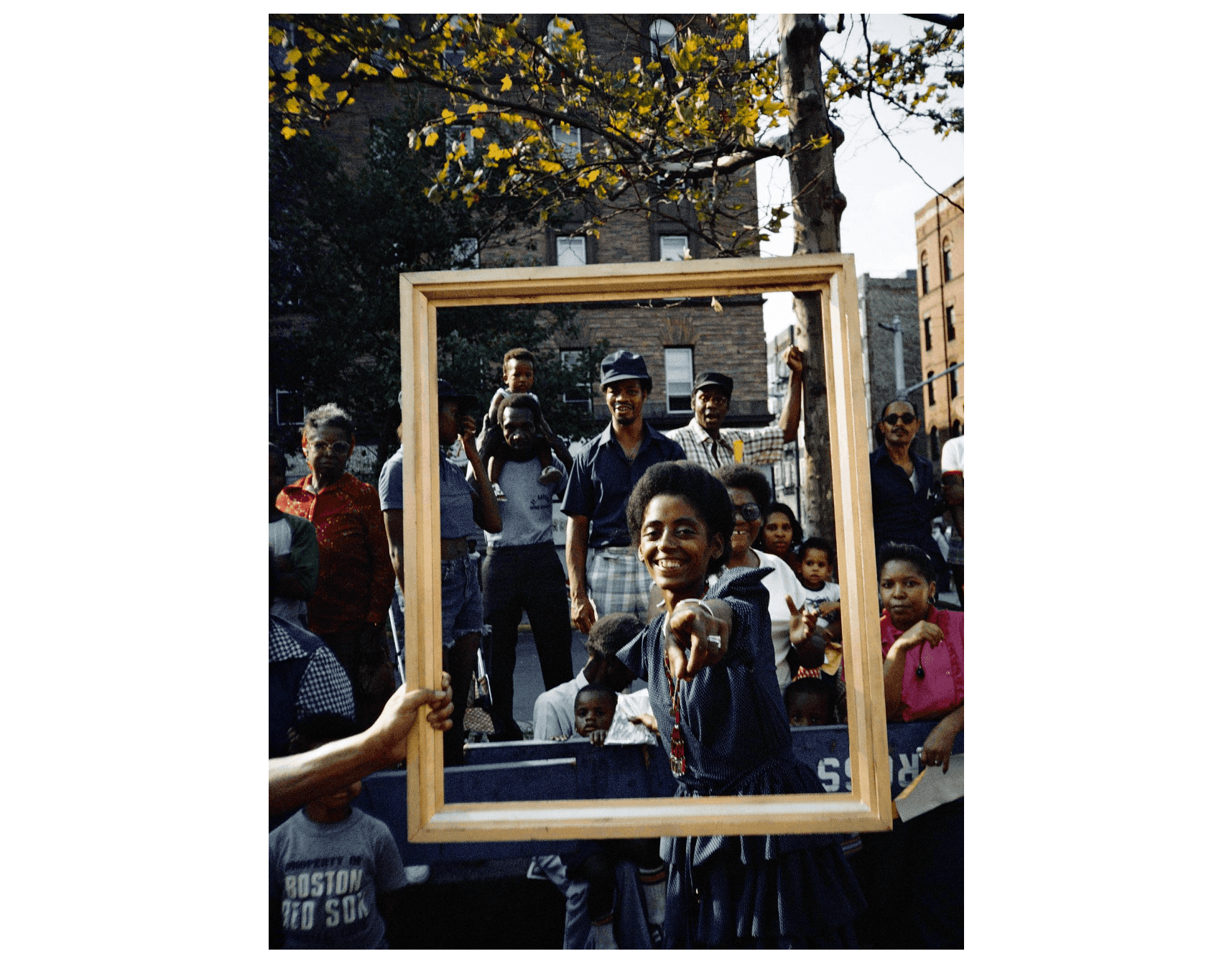 Lorraine O’Grady, Art Is. . . (Girl Pointing), 1983/2009. Chromogenic photograph in forty parts, 20 × 16 in. Edition of eight plus one artist’s proof. © Lorraine O’Grady/Artists Rights Society (ARS), New York.