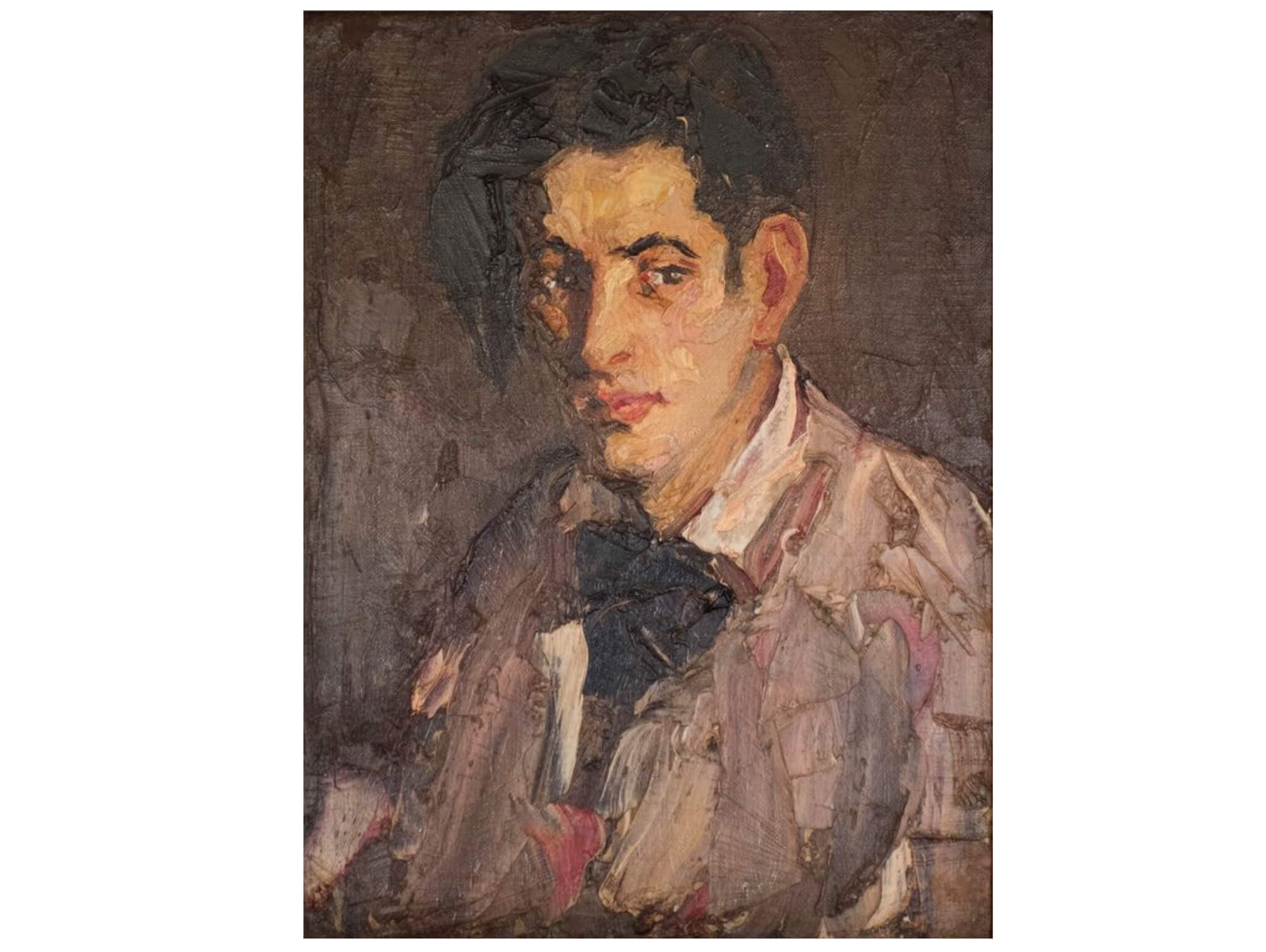 Arshile Gorky, Self-Portrait, 1923–24. Oil on canvas board, 16 x 12 inches. Front, upper left: Gorky. Reverse not inscribed. Private collection.