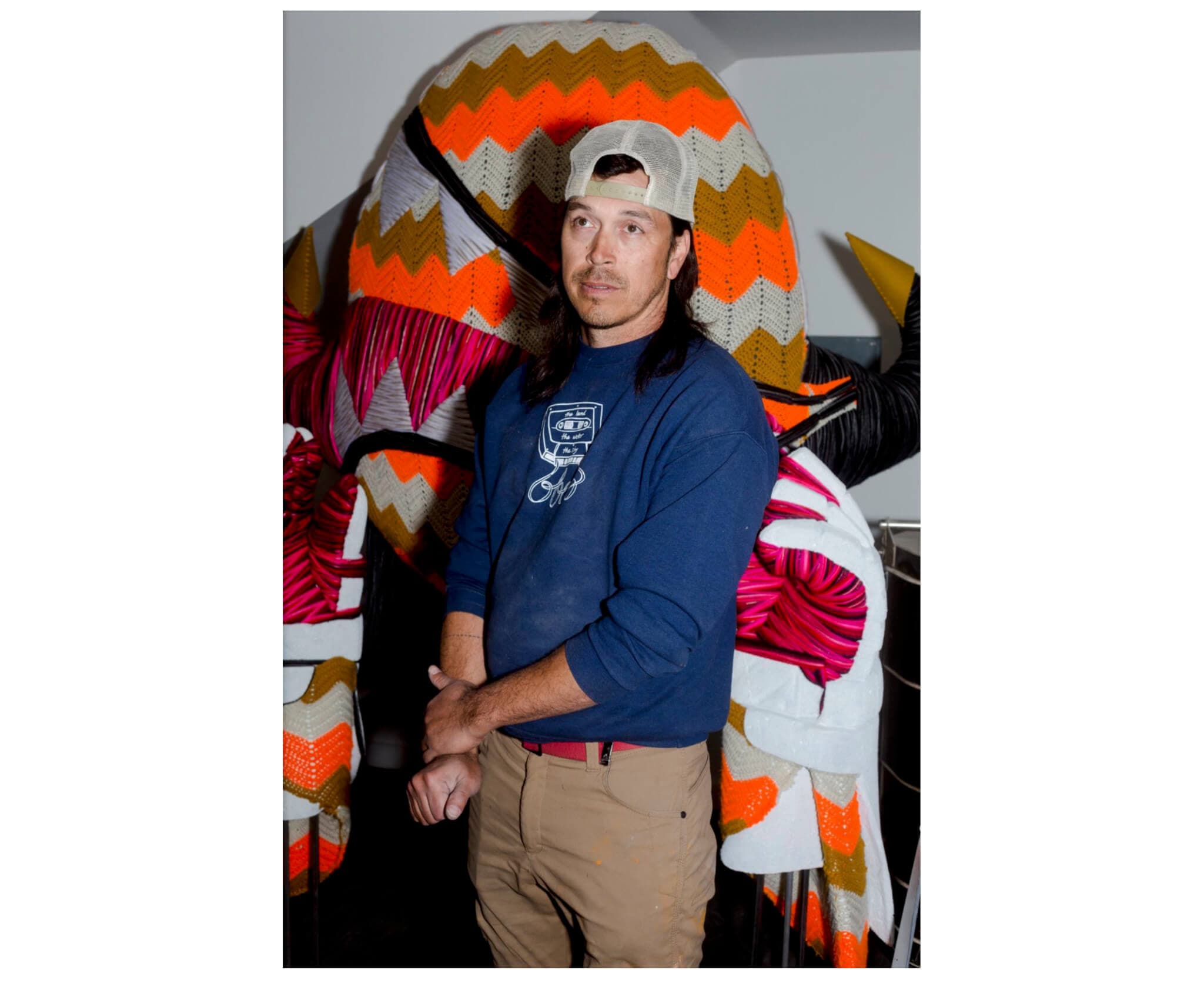 Luger conceived of Transmutation as a walkway or pergola comprising two portals connected by a large net, which holds dozens of ribbons tied by local Indigenous community members during a series of workshops. A larger-than-life resin casting of a bison skull made from an original ceramic artwork handbuilt by Luger is mounted on each portal. One skull is white, and the other is black, alluding to calcium carbonate and bone black pigment, two products made from charred buffalo bones.
