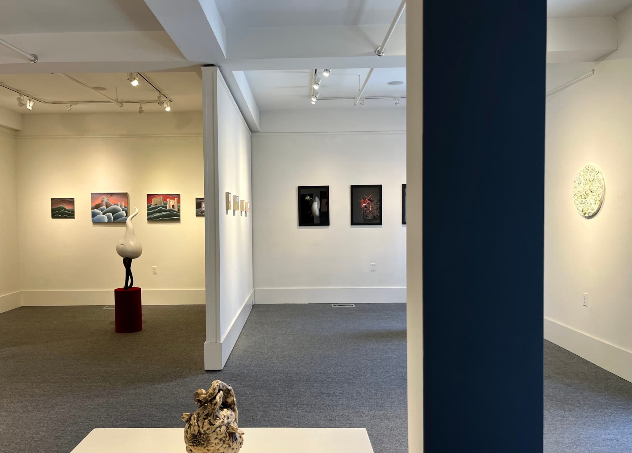 Co-founders George Newall and Ingrid Lundgren hail from New York, where they have both spent over a decade working in commercial galleries. When they found themselves spending more time on the island in the wake of the first COVID wave, they wanted to find a way to bring their corner of the art world to the island while also giving back to the communities Lundgren grew up in. Their debut exhibition opened in July 2020—the first of many group exhibitions featuring emerging to established artists by way of paintings, prints, and small sculptures.