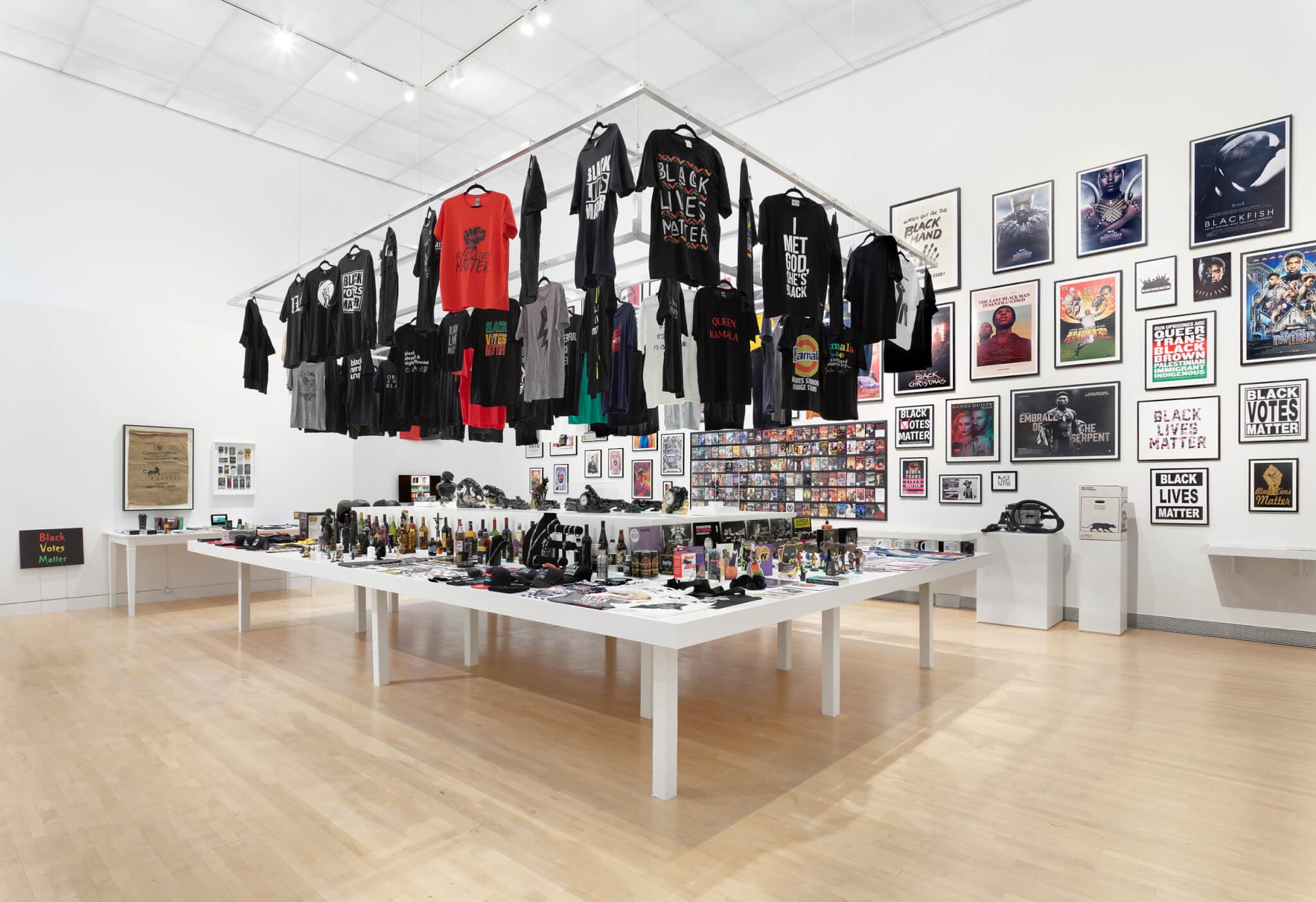 Fred Wilson, Black Now!, 2025. Installation view, “Fred Wilson, Reflections,” Rose Art Museum, Brandeis University, 2025. Photo by Julia Featheringill Photography. Courtesy of Rose Art Museum.