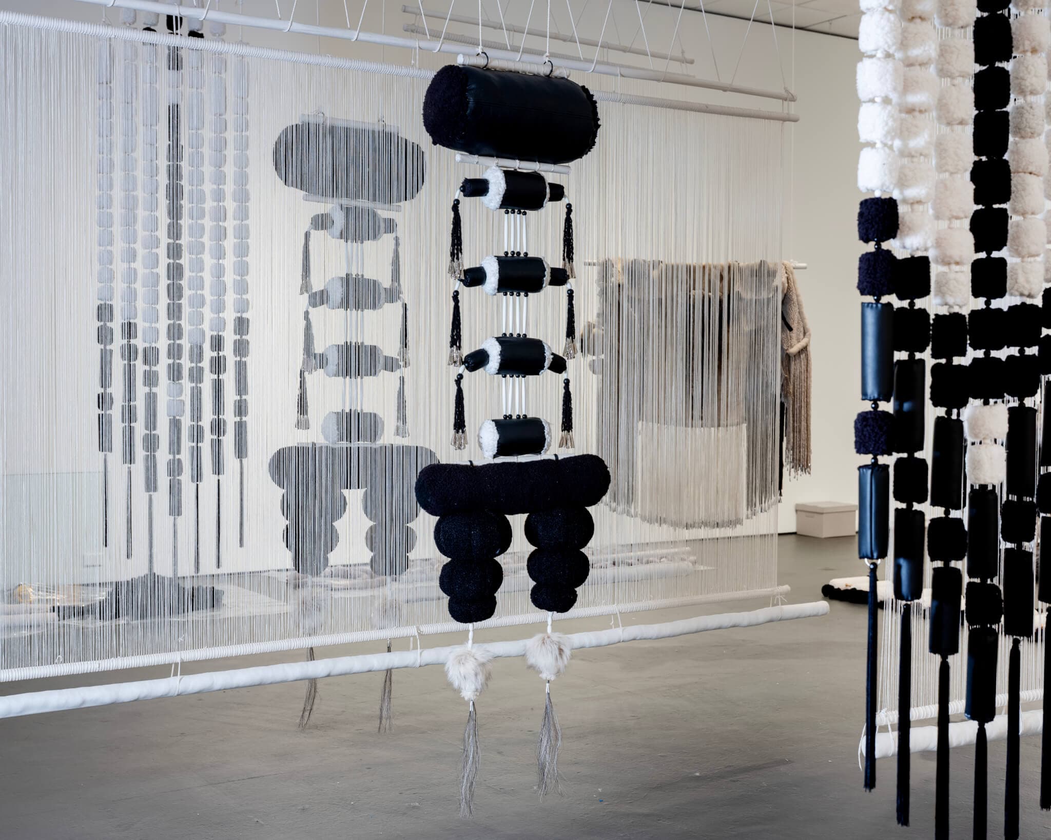 Installation view, “Overbody: New Works by Sreshta Rit Premnath,” Usdan Gallery at Bennington College, 2025. Courtesy of Usdan Gallery at Bennington College.
