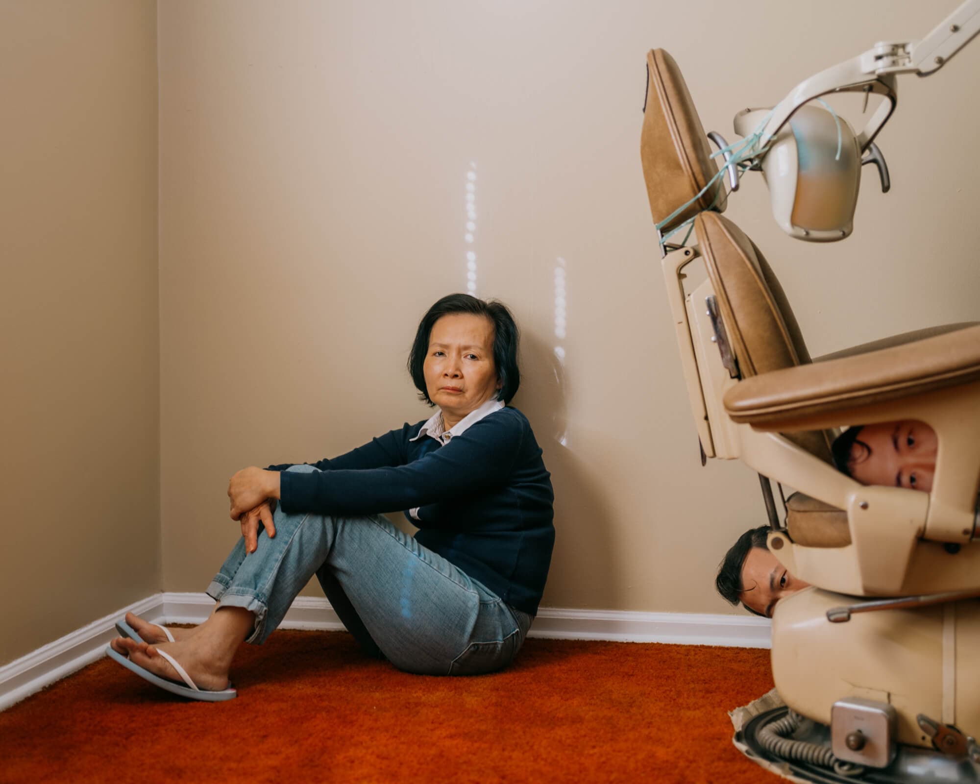 Of all the shows opening this fall, I’m perhaps most excited for Tommy Kha’s “Other Things Uttered.” In his first solo museum exhibition, the Addison Gallery’s 2025 Hayes Prize winner pairs landscapes with domestic scenes—often featuring the artist’s mother—that appear ordinary, if not for the frequent appearance of Kha’s floating body parts. Kha refers to many of his works as “half-portraits”—new and old family photographs that he’s juxtaposed with cut-outs of his face and frame. These collages offer the artist a way of placing himself within an intergenerational history he once felt far removed from, growing up queer in an immigrant household. Across his body of work, you’ll find Kha’s expressionless face drifting freely: lying on its side atop the coils of an idle stove; just released from a hand, midair as if a ball in play; sandwiched into the joint of a dentist’s chair. Quirky, slightly unsettling, and unexpectedly comical, Kha’s half-portraits create a strangely unified vision of his world. —Ava Mancing