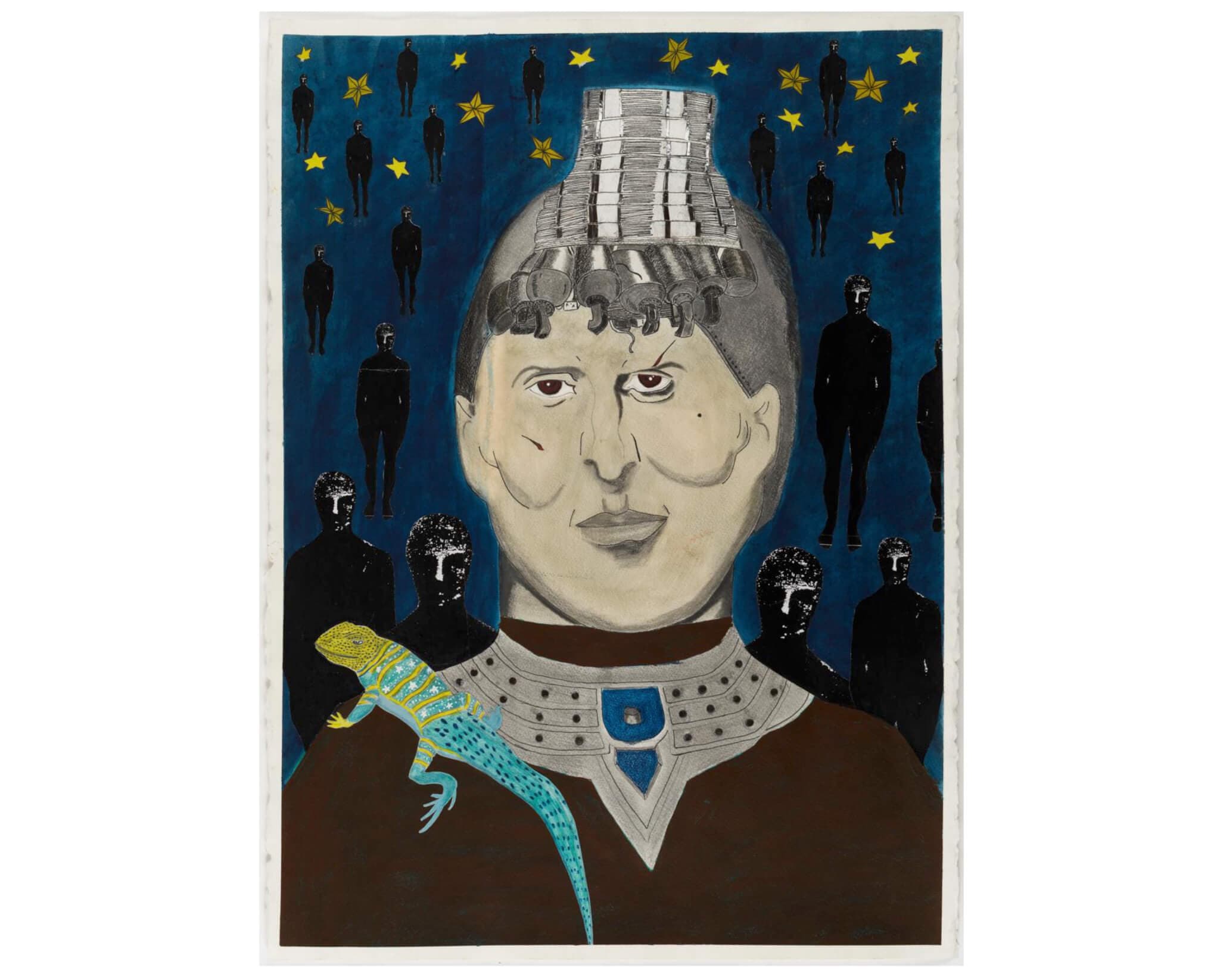 Gerald Wiggins, Untitled, 2009. Acrylic, marker, colored pencil, and collage on paper. 30 x 22 inches. Courtesy of Outer Space.