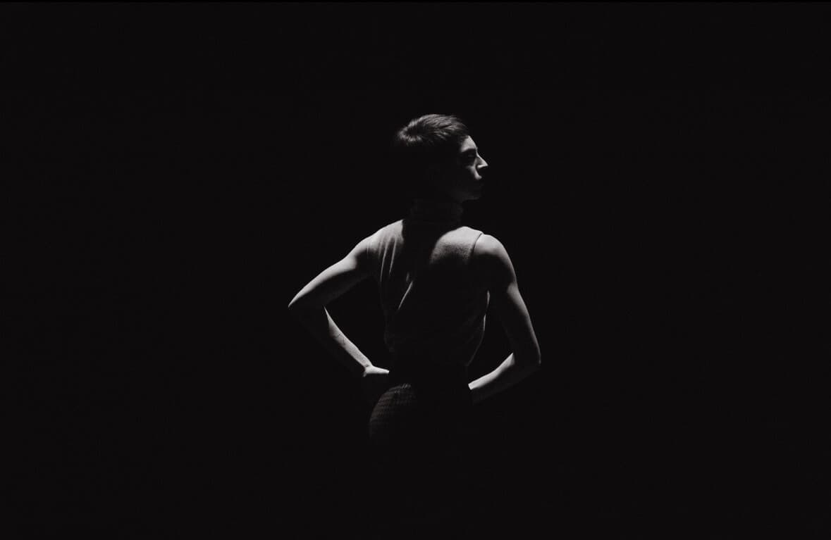 About halfway through The Theremin Vignettes, a young Clara Rockmore, played by Haley Andrews, curls herself up on the floor as if in tremendous pain. Having just stripped off and carefully arranged her long white gloves before her, she presses her forehead against the cold bare ground. One vignette has just ended, and in the suspended silence between dances, Andrews slowly arcs up one arm until it is stiffly perpendicular to the floor, palm flexed wide toward the audience. When the first bell-like note of Ravel’s Kaddish from Deux Mélodies Hébraïques sounds, her hand spasms into a fist. Rockmore has just learned she’ll never play the violin again.