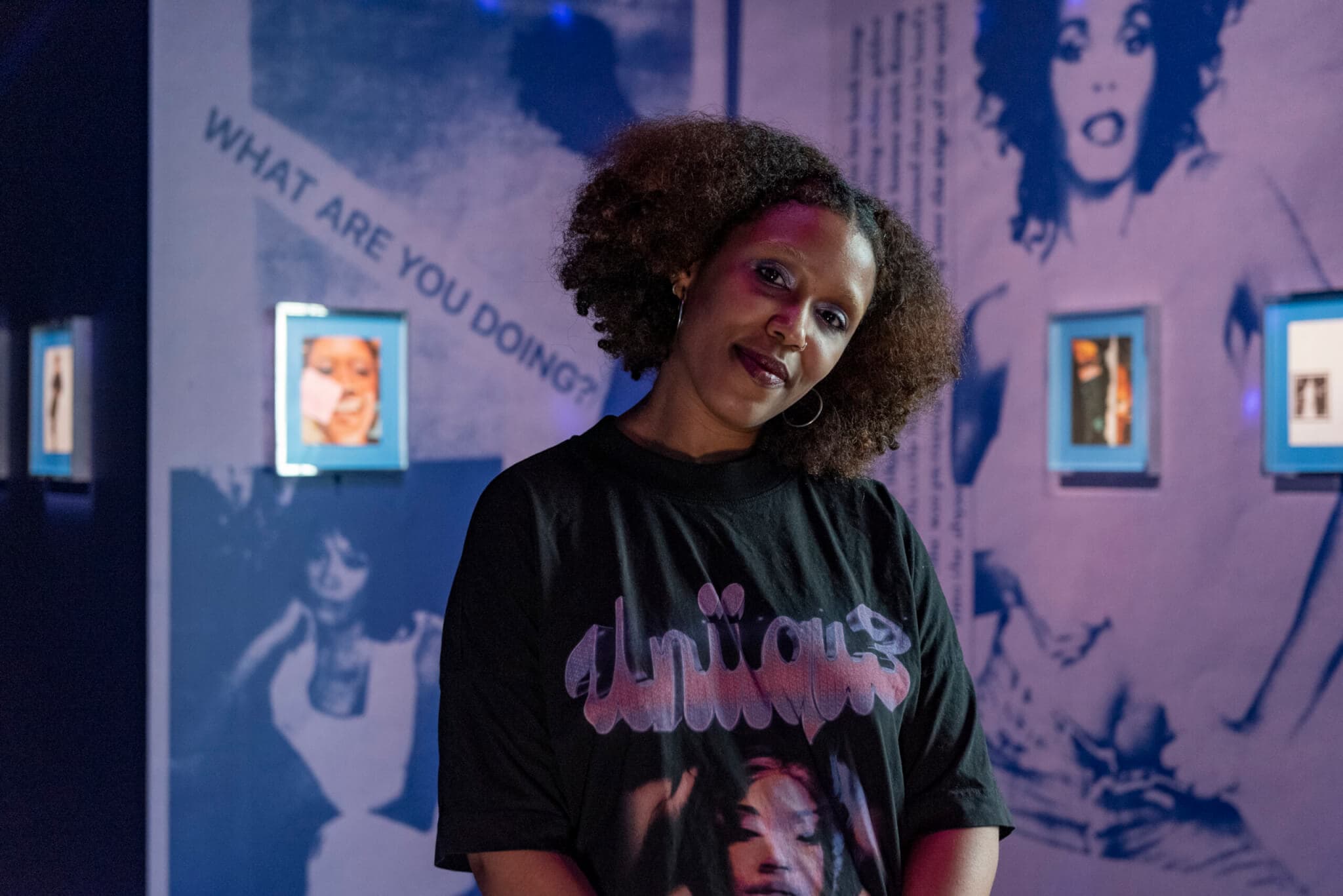 In “Drenched in Light,” E. Jane stages Black divas in dazzling purple light. As MFA Boston’s latest artist-in-residence, E. Jane presents their first solo museum show with an interdisciplinary query into the figure of the Black diva, archiving moments from greats like Diahann Carroll, Jennifer Holliday, Beyoncé, and Bessie Smith. Jane’s video essay LetMEbeaWomanTM.mp4 (2022) collages scenes of Black women figure skating, accepting Tonys and Emmys, as avatars, in a meadow of flowers, the words “A WOMAN™” overlaid at times. Questions emerge around gender performance, self-empowerment, and how cultural achievement operates for Black women. Guests can collect a free zine designed by E. Jane, which includes an excerpt from Zora Neale Hurston’s 1924 short story “Drenched in Light” and words on divahood.