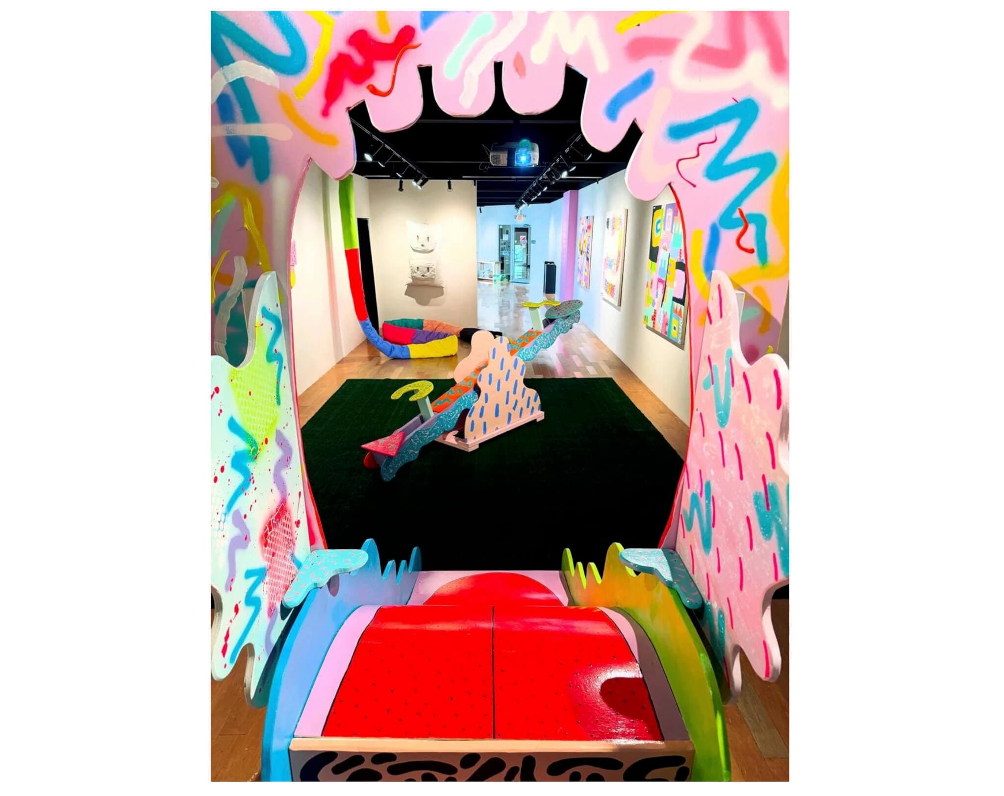 “We’re deconstructing reality to shape reality into what we want and into something that works for us,” said Allis. “It’s an all-ages vibe, just trying to encourage people to play and go on these rides. I’m drawn to the fun house vibe.”